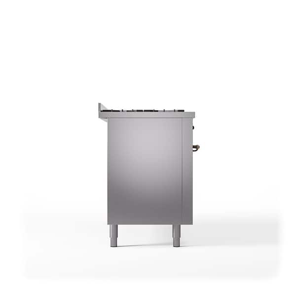 Nostalgie II 60 in. 9 Burner+Griddle Freestanding Double Oven Dual Fuel Range in Stainless Steel with Bronze