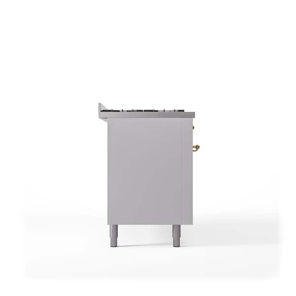 Nostalgie II 60 in. 9 Burner+Griddle Freestanding Double Oven Dual Fuel Range in White with Brass