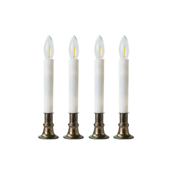 9 in. Electric Window Candle Antique Bronze w/Warm White LED Bulb and Sensor 4-Piece Set
