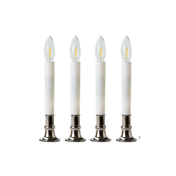 9 in. Electric Window Candle Dark Pewter w/Warm White LED Bulb and Timer 4-Piece Set