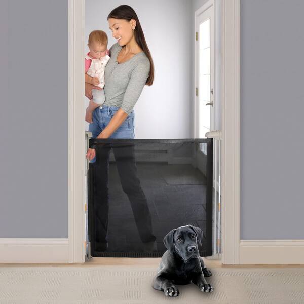 The Thruway 52W Series Pet and Baby Retractable Gate with Tuck Away Mesh, Hardware Mounted, 30 in. Tall