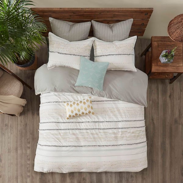 Nea 3-Piece Off White/Gray Cotton Percale Full/Queen Comforter Set