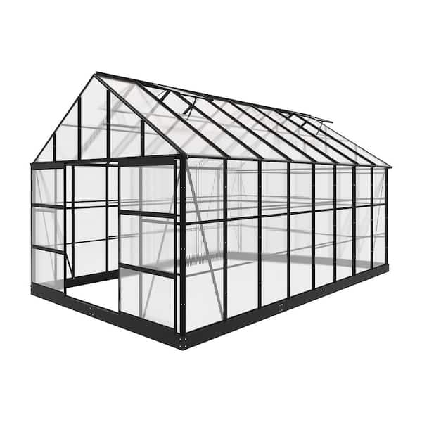 10 ft. x 16 ft. Black Aluminum Frame Clear Panel Garden Greenhouse and Solarium Conservatory