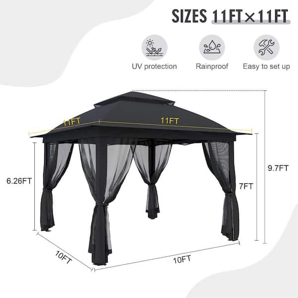 11 ft. x 11 ft. Pop-Up Steel Gazebo with Vented Double Roof, Mosquito Netting, and Carry Bag
