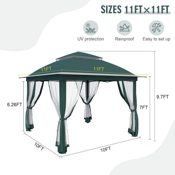 11 ft. x 11 ft. Pop-Up Steel Gazebo with Vented Double Roof, Mosquito Netting, and Carry Bag