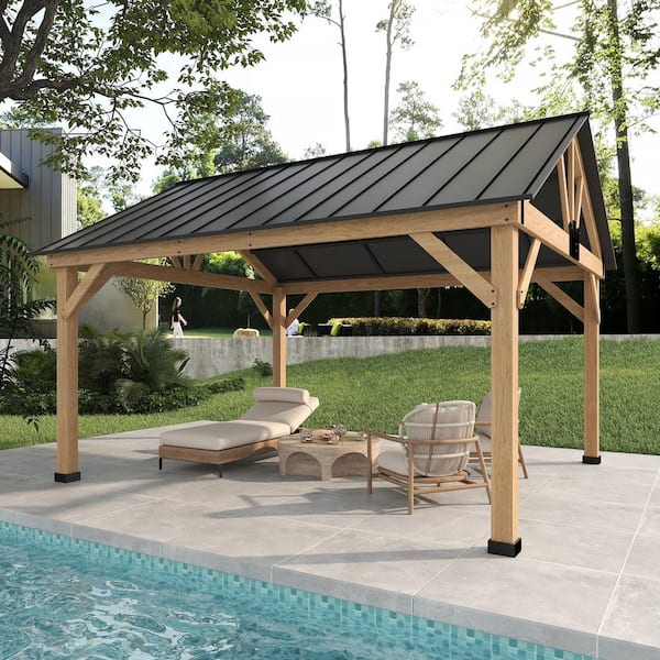 11 ft. x 13 ft. Cedar Wood Gazebo Hardtop with Steel Roof and Ceiling Hook