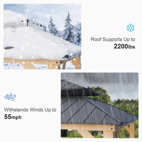 13 ft. x 11 ft. Wood Patio Gazebo with Double Galvanized Steel Roof And Mosquito Netting, Privacy Curtains