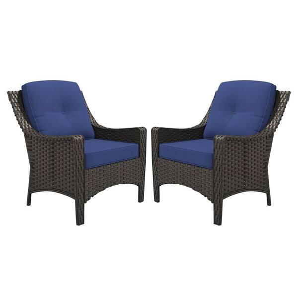 2-Piece Wicker Outdoor Lounge Chair Set with Blue Cushions for Patio, Deck, or Backyard