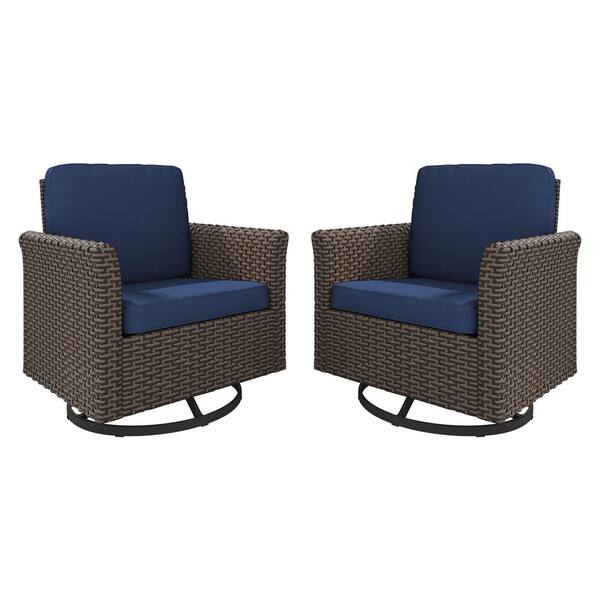 2-Piece Wicker Outdoor Lounge Chair Set with Blue Cushions for Patio, Deck, or Backyard