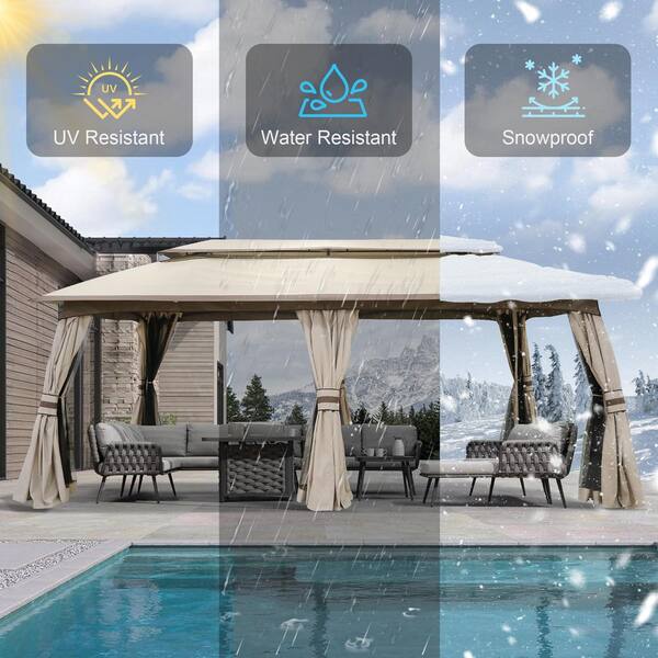20 ft. x 10 ft. Outdoor Patio Gazebo with Double Roof, Mosquito Netting, and Curtains