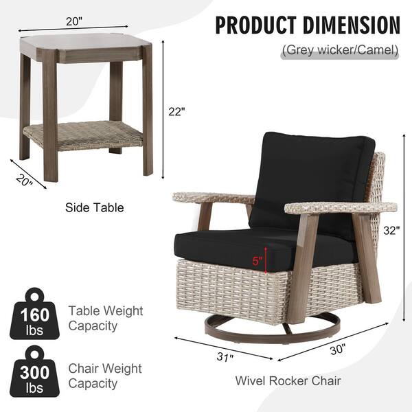 3-Piece Patio Wicker Conversation Set with Black Cushions and Side Table-Swivel, Rock, and Relax in Style