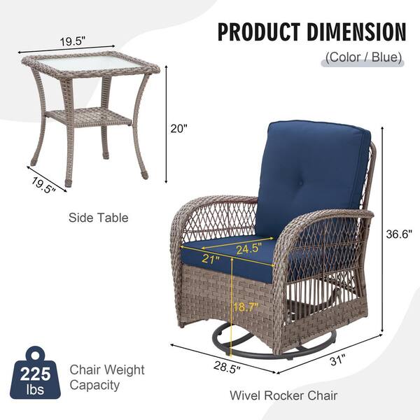 6-Piece Patio Wicker Conversation Set with Blue Cushions and Side Table-Swivel, Rock, and Relax in Style