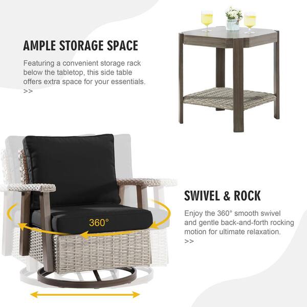 6-Piece Wicker Patio Conversation Set with 360° Swivel Chairs and Black Cushions, Includes 2-Side Tables