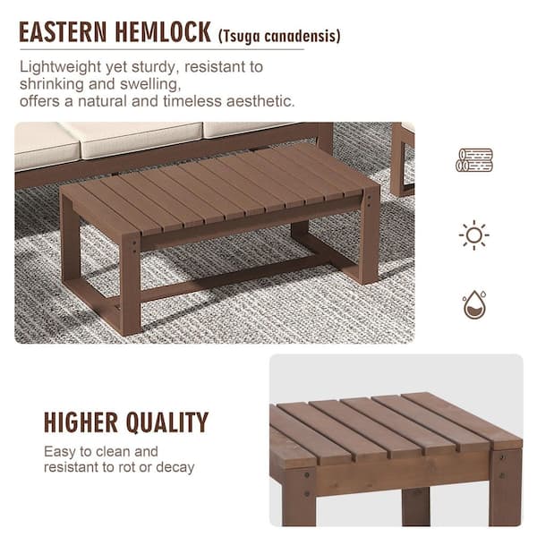 7-Piece Rustic Hemlock Wood Outdoor Patio Conversation Set with Beige Cushions