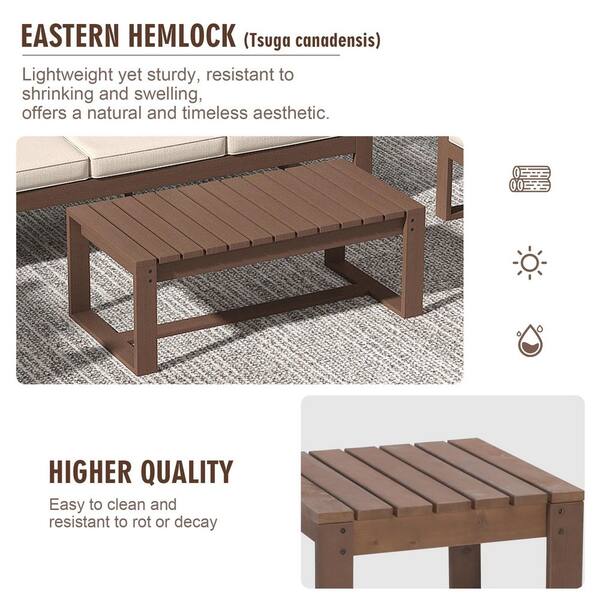 8-Piece Hemlock Wood Patio Set with 3-Seat Sofa, 4-Armchairs, Coffee Table and Side Tables, Beige Cushions