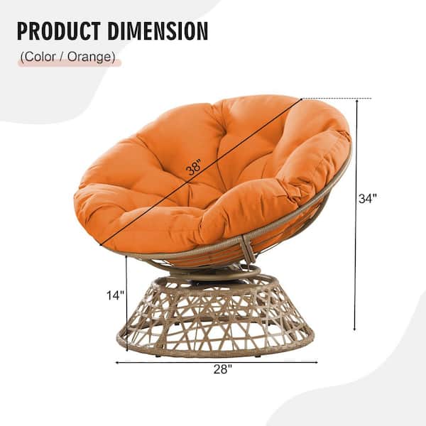 Brown Wicker Outdoor Patio Papasan Swivel Lounge Chair with Orange Cushion