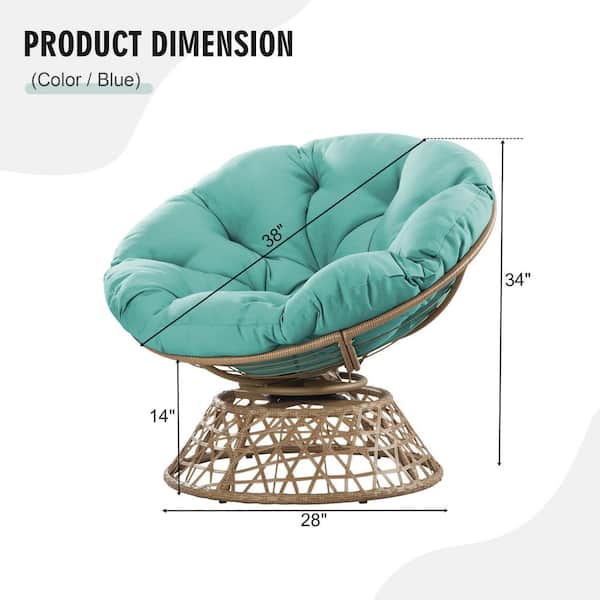 Brown Wicker Outdoor Patio Papasan Swivel Lounge Chair with Turquoise Cushion