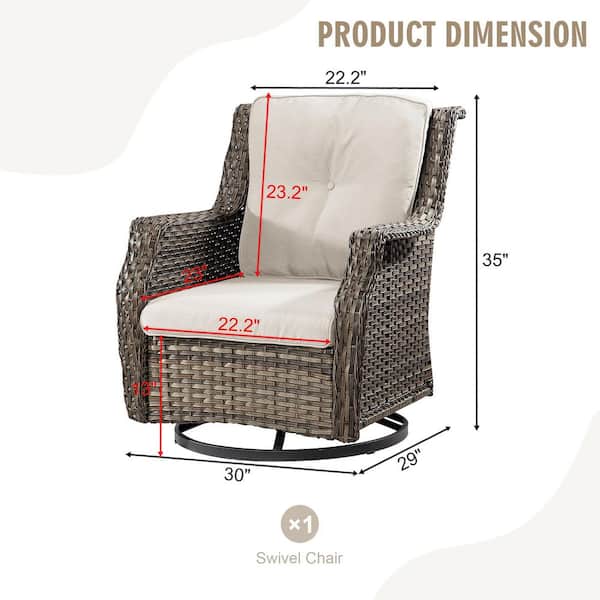 Outdoor Patio Wicker Lounge Chair Swivel Rocking Chair with Beige Cushions