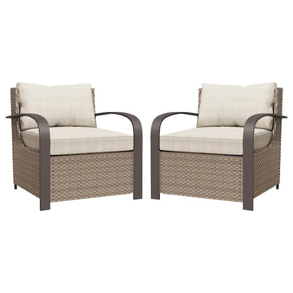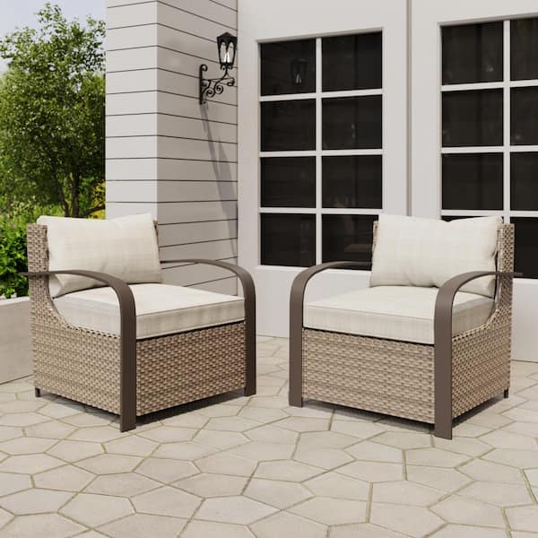 Wicker Patio Outdoor Lounge Chairs with Beige Cushions, Handwoven Rattan (2-Piece)