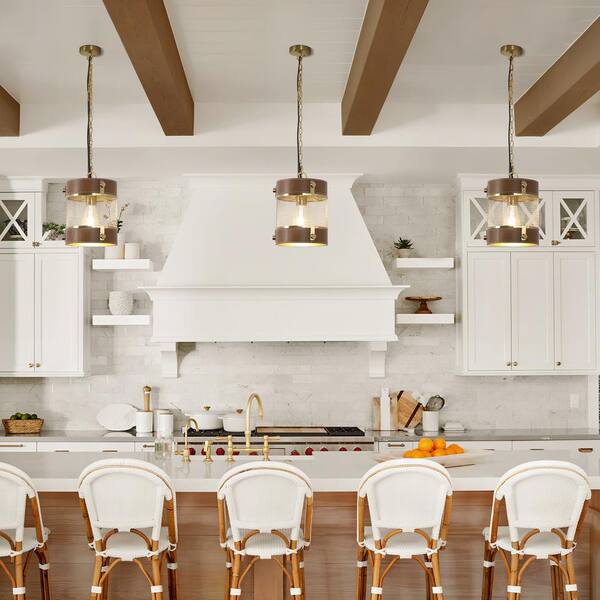 1-Light Gold Vintage Lantern Pendant Light with Caged Leather Shade(2-Pack)