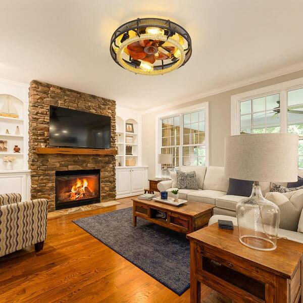 19.6 In. Bronze Indoor With 7 Imitation-Wood-Color Blades Caged Reversible Ceiling Fan with Lights and Remote Control