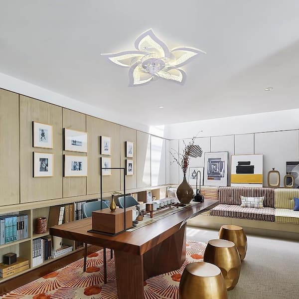24.6 in. Modern 6 Speeds Indoor Flower Shape Dimming Flush Mount Ceiling Fans Lamp LED with Remote Control