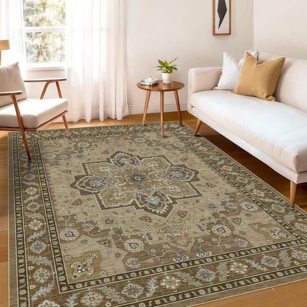 3 ft. x 5 ft. Indoor Machine Washable Rug Soft Brown