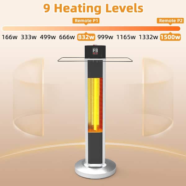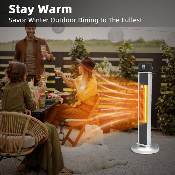 35 in. Hight 1500W Stainless Steel Electric Patio Heater with Remote in Black and White