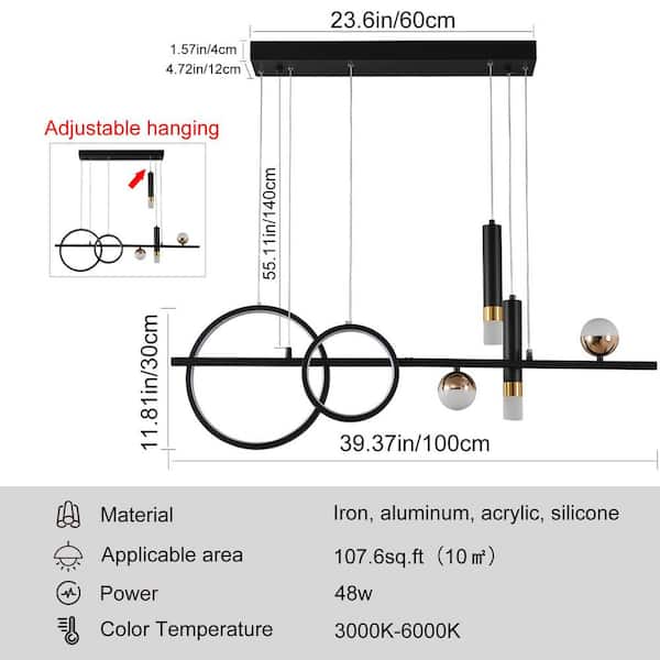 5-Light Black Modern Led Pendant Light Dimmable Linear Ware Chandelier