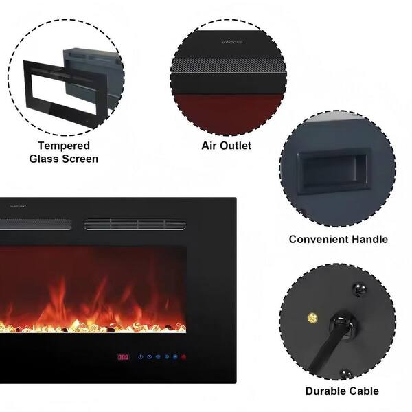 72 in. Wall Mount LED Technology Electric Fireplace Glass with Timer Function from 1-9h in Black