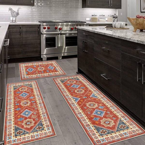 Kitchen Rugs and Runner Sets of 3 Washable Non Slip Kitchen Runner Rug in Red