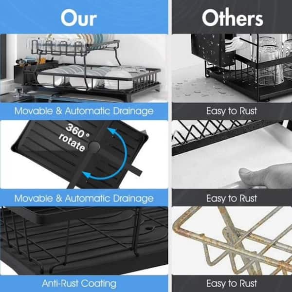 Over Sink Dish Rack 2 Tier Stainless Steel Space Saving Drainer with Cup Holder Black