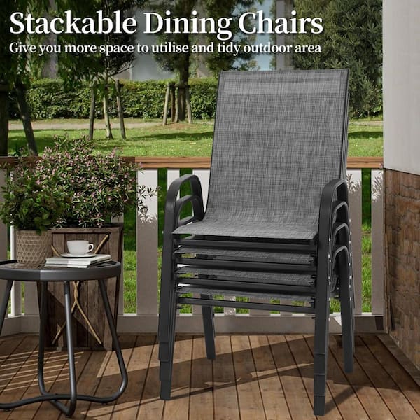 5-Piece Metal Outdoor Dining Set with 4-Textilene Stackable Chairs and Rectangular Table, Patio Dining Table (Set for 4)