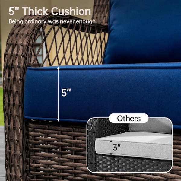 6-Piece Wicker Patio Conversation Set with 5 in. Thick Blue Cushions, High Back Outdoor Swivel Rocker Chairs Set