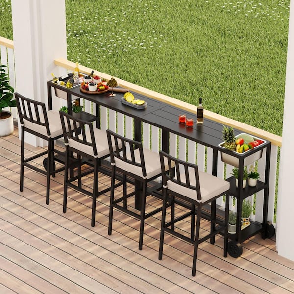 Metal Outdoor Bar Stools Counter Height Barstools with White Cushions (4-Pack)