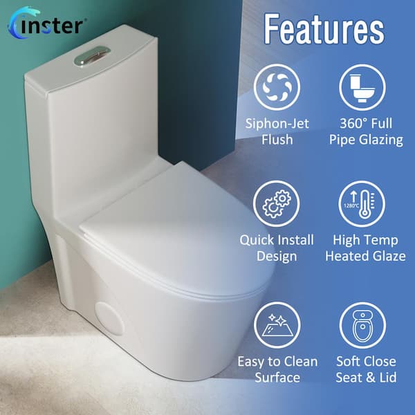 1-Piece 1.27/1.6 GPF Dual Flush Elongated Toilet with Soft Close Seat in White