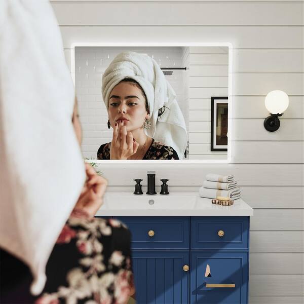 36 in. W x 28 in. H Rounded Rectangular Frameless LED Wall Mount Bathroom Vanity Mirror (Non-Full Strip)