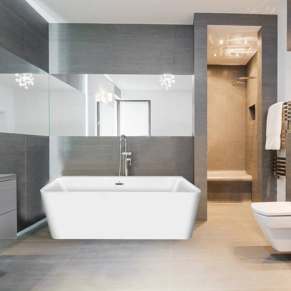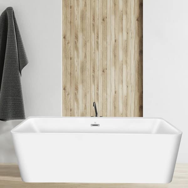 55 in. Acrylic Flatbottom Rectangle Modern Stand Alone Soaking Tub Non-Whirlpool Bathtub in White