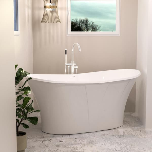 67 in. Acrylic Classic Elegant Curve Shaped Flatbottom Non-Whirlpool Double-Ended Full Immerse Soaking Bathtub in White