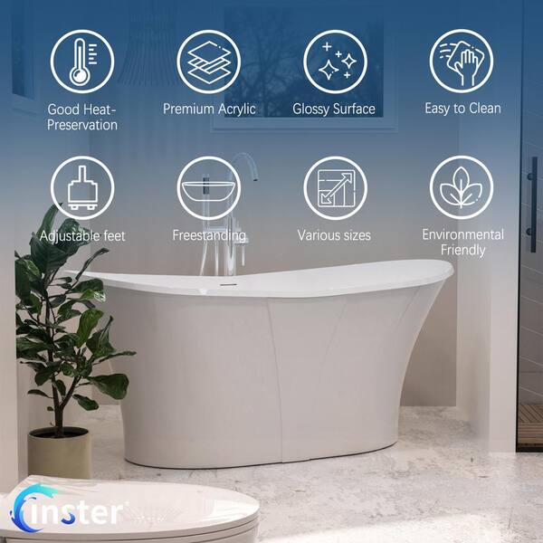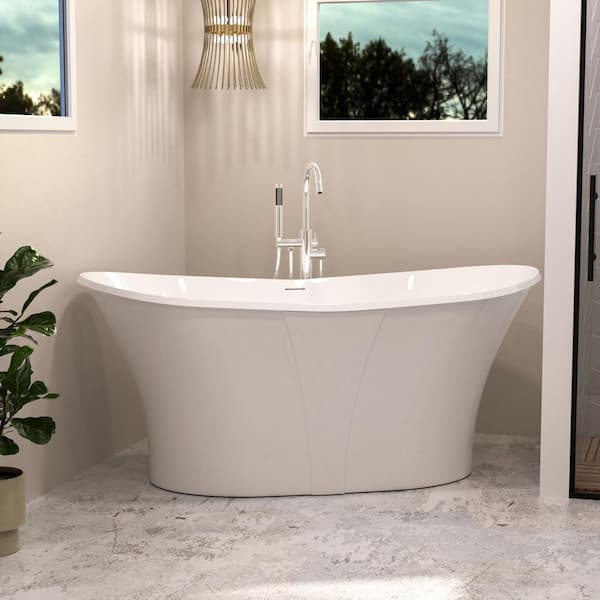 67 in. Acrylic Curve Shaped Flatbottom Non-Whirlpool Double-Ended Full Immerse Soaking Bathtub in White