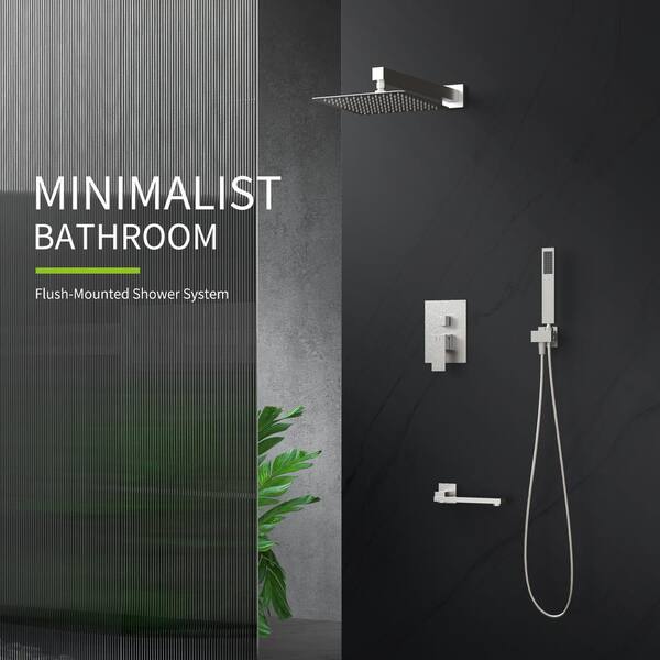 AIM 1-Spray 12 in. Dual Wall Mount Fixed and Handheld Shower Head 1.8 GPM in Brushed Nickel(Tub Faucet & Valve Included)