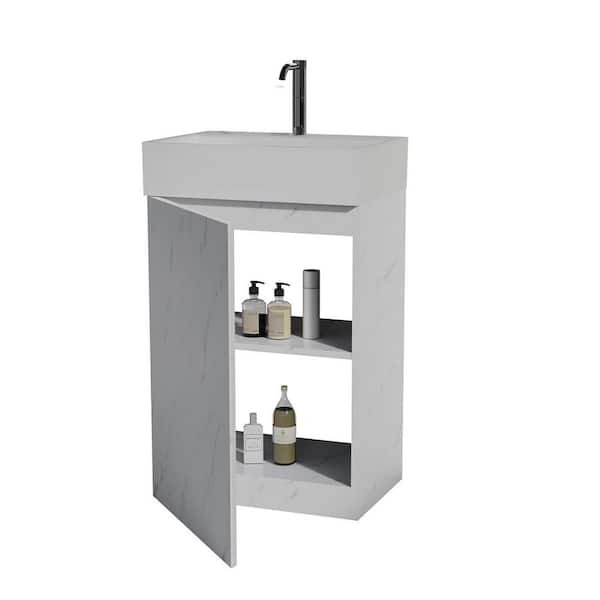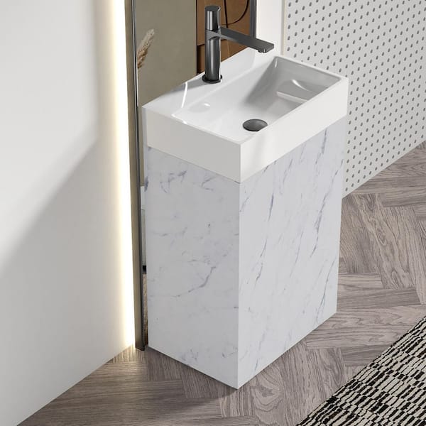 BEANS 20 in. W Single Sink Freestanding White Marble Bath Vanity with White Ceramic Top for Modern Bathroom