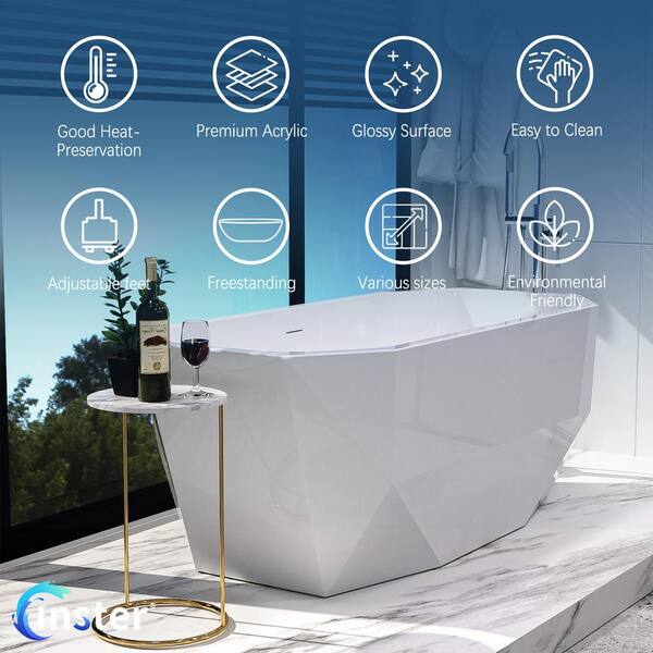 Diamond 63 in. W. x 29 in. Acrylic Non-Whirlpool Soaking Bathtub with Center Drain in White
