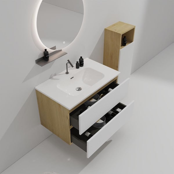 Glory 30 in. Single Sink Wall Mounted Oak with Matt White Panel Bath Vanity with White Integrated Ceramic Top Sink