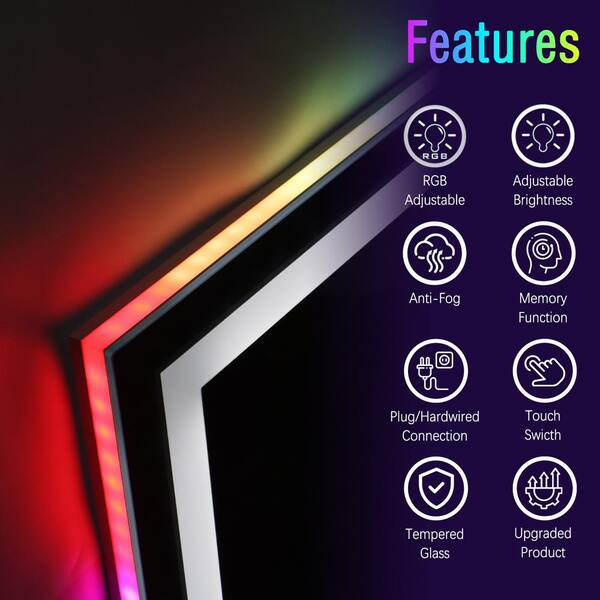 Iridescent 60 in. W x 36 in. H Rectangular Frameless RGB LED Lighted Defog Wall Mount Bathroom Vanity Mirror