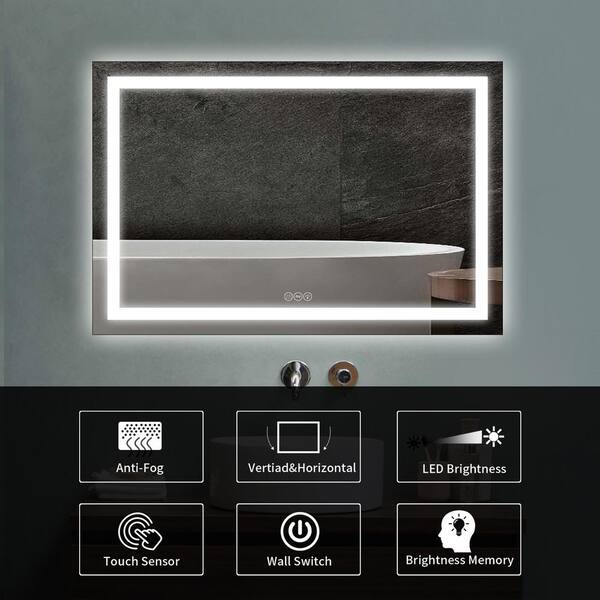 Luminous 48 in. W x 32 in. H Rectangular Frameless LED Lighted Wall Mounted Anti-Fog Bathroom Vanity Mirror