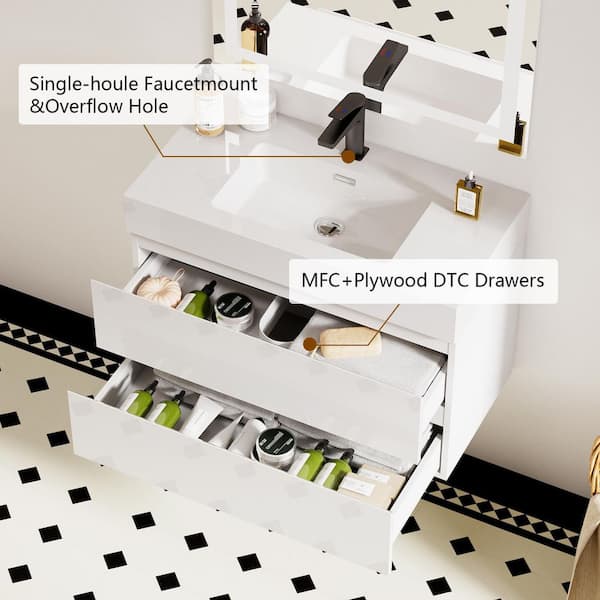 NOBLE 24 in. W x 18 in. D x 25 in. H Single Sink Floating Bath Vanity in White with White Solid Surface Integral Top