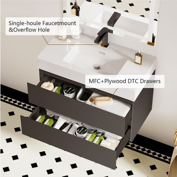 NOBLE 30 in. W x 18 in. D x 25 in. H Single Sink Floating Bath Vanity in Gray with White Solid Surface Integral Top