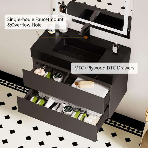 NOBLE 36 in. W x 18 in. D x 25 in. H Single Sink Floating Bath Vanity in Gray with Black Solid Surface Integral Top