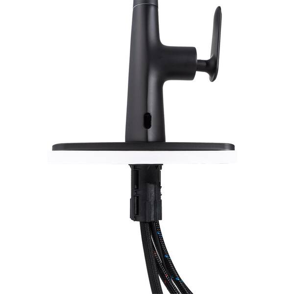 Single Handle Goose Neck Pull Down Sprayer Kitchen Faucet with Touch Sensor in Matte Black
